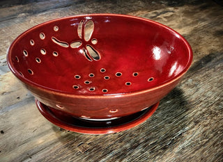 Hand slabbed moon bowls are decorated with multiple layers or various glazes then fired to 2228'F for desired effect.